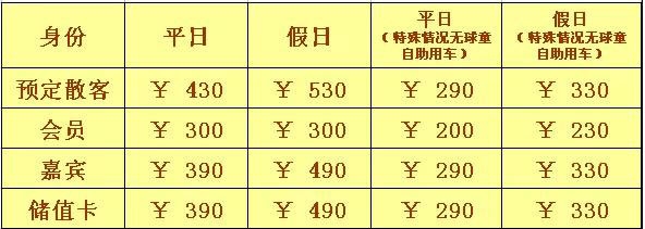 1、以上收费标准为18洞费用,9洞为18洞费用的一半;特殊情况无球童自助打球不设9洞费用;