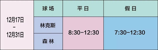 上海揽海国际高尔夫俱乐部12月运营安排