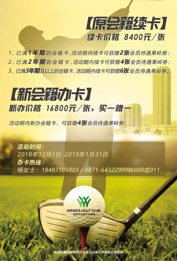 昆明万达高尔夫球会2019年会籍限时特惠