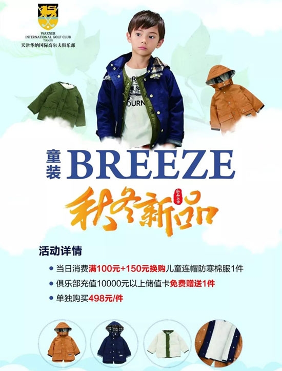 凡下场打球客人,均可加150元换购童装棉服一件
