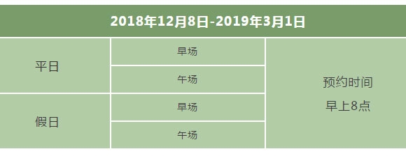 球会针对2018年12月8日到2019年3月1日期间,营业时间作相应的调整: