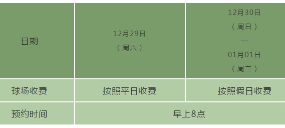泰州云海湿地高尔夫冬季营业时间及元旦期间营业安排