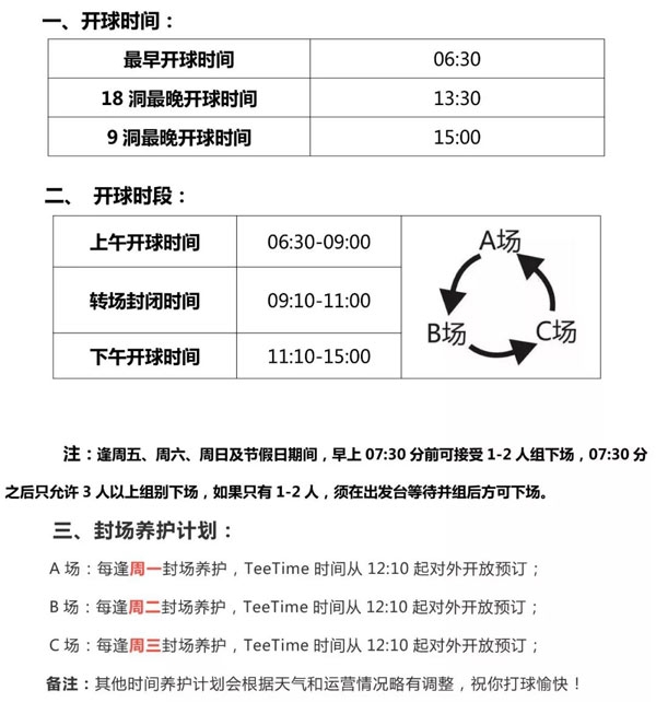 广州九龙湖高尔夫球会12月营业时段安排