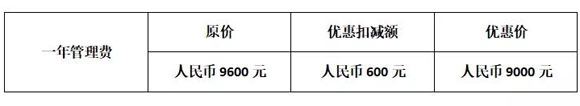 凡于2019年3月31日前一次性预缴2019年全年管理费,将可获得人民币600元的扣减优惠。