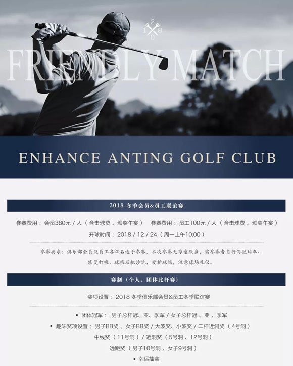 入冬之后的高尔夫球场层林尽染,暑来寒往的美景之下,一场别出心裁的高球联谊赛筹备良久,员工展现实力与会员成为对手,一起相聚颖奕、征服球场,尽情徜徉于高尔夫的小世界里,冬季会员&员工联谊赛报名正式开启!