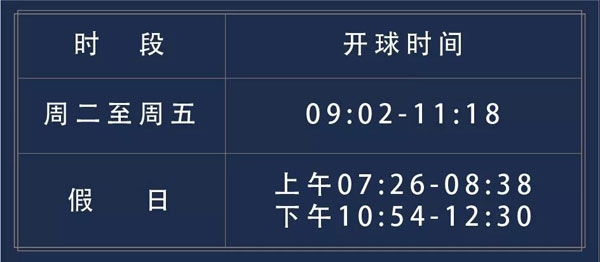 平假日均为双Tee开球,八分钟一组,其他时间预约可根据营运情况进行调整;