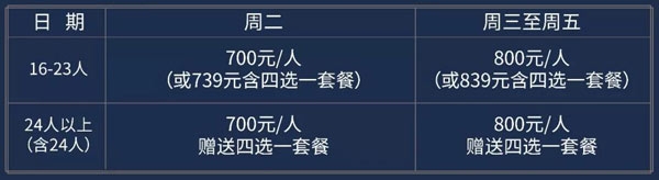 团队女子:尊享600元/人(或679元含四选一套餐),不享团队超人数赠餐政策;