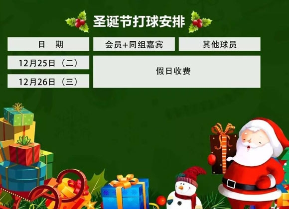 雅居乐长江高尔夫球会圣诞节击球安排