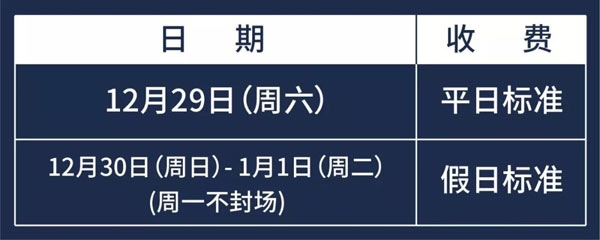 您好!元旦假期即将来临,棕榈滩愿您欢喜辞旧岁,崭新遇见2019,开启新年新光景!现将元旦期间营业时间及收费标准公布如下: