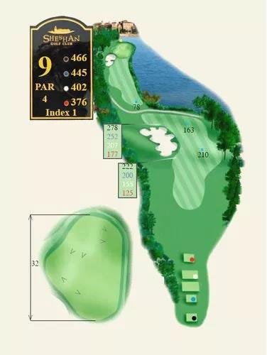 此次入选2018欧巡赛季排名第八位的就是佘山高尔夫的9号洞,总长486码,标准杆四杆。在世锦赛-汇丰冠军赛期间平均杆数4.44杆,由埃里克-范-鲁彦曾在比赛的第三轮中打出7杆的最高纪录。