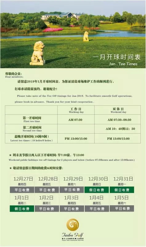 苏州太湖国际高尔夫俱乐部一月开球时间表