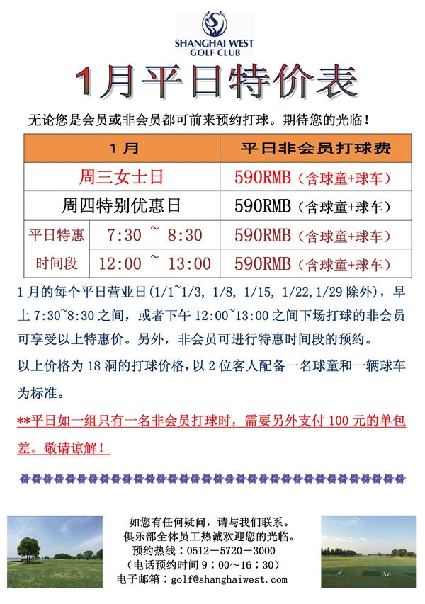 590元/18洞 2019年上海光明高尔夫1月平日指定时间特惠