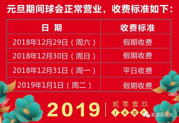 辞旧迎新·欢度元旦 珠海翠湖高尔夫收费通知