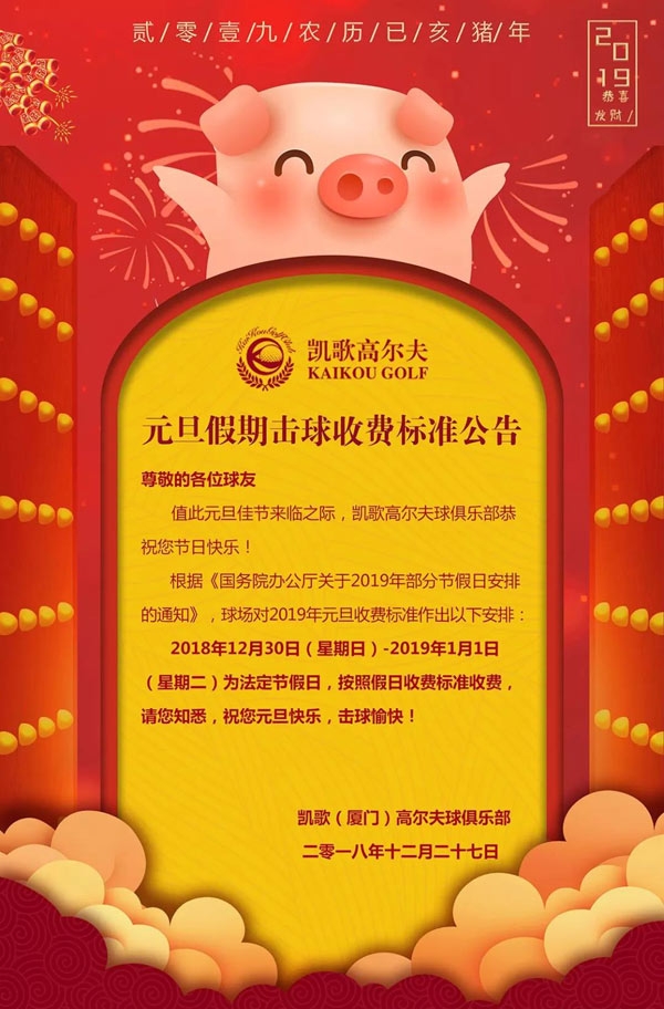 厦门凯歌高尔夫2019元旦假期击球收费标准公告