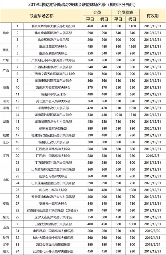 新年共赢!悦达射阳岛高尔夫2019联盟球会新名录