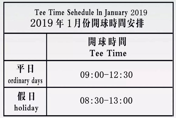 天气日渐寒冷,打球黄金时间减少。为了给您和嘉宾提供更为舒适的打球时间,1月份球会开球时间有所调整: