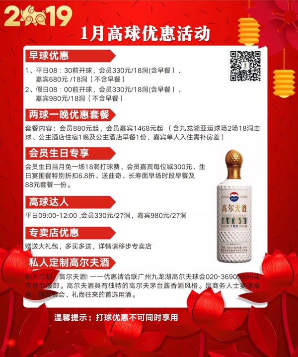 广州九龙湖高尔夫球会2019年1月高球优惠活动