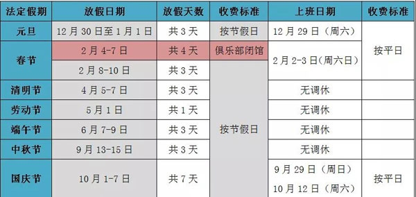 为切实做好节日期间的会员接待,2019年法定节假日期间,俱乐部收费标准如下,敬请留意。