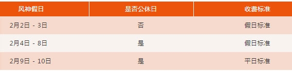 2019年2月9日和10日这个周末,到风神打球将按平日标准收费!