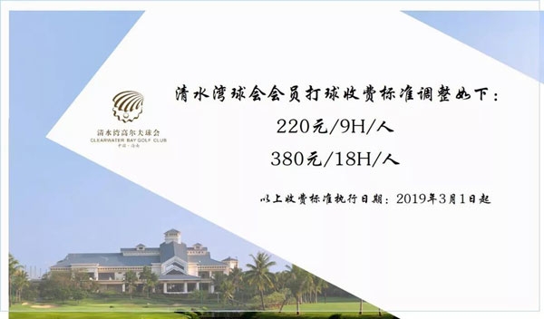自2019年3月1日起,海南清水湾高尔夫球会会员打球价格将进行适当上调,具体调整如下: