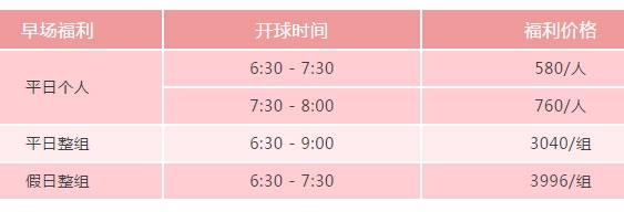 即日起通过风神高尔夫俱乐部线上预订平台订场,可选多项早场福利。