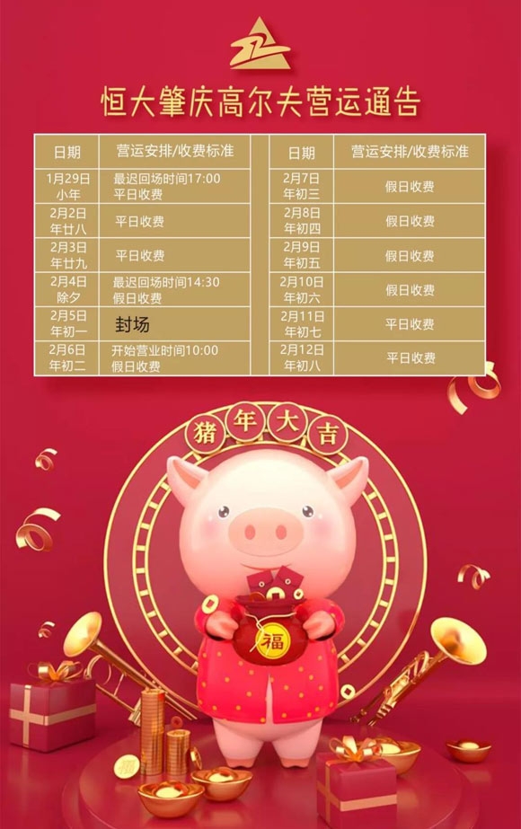 广东恒大肇庆高尔夫俱乐部营运安排通告