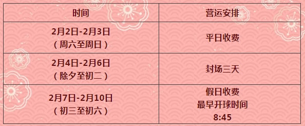 猪年恭贺新春!双山高尔夫俱乐部2019春节营运安排: