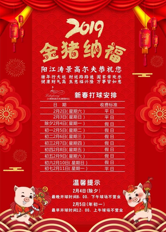 阳江涛景高尔夫球会新春假期收费标准公告