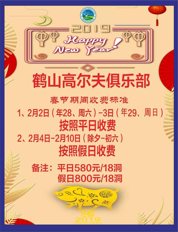 广东鹤山高尔夫俱乐部春节期间营运安排