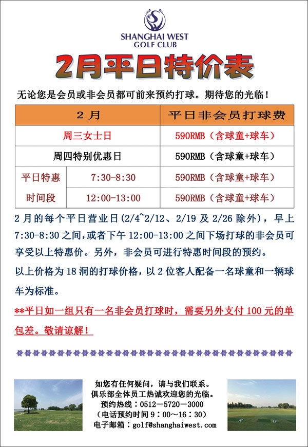 590元,上海光明高尔夫2月平日指定时间特惠价