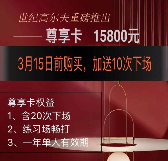 3、3月15日之前购买尊享卡,加送10次下场。