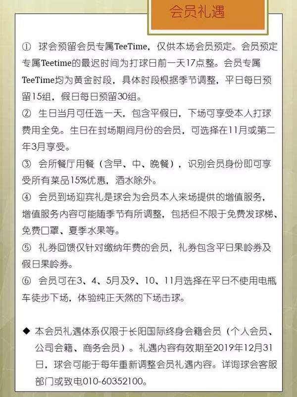 北京长阳国际高尔夫会员礼遇全新升级