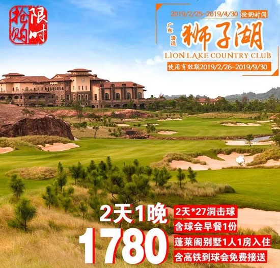 清远狮子湖高尔夫【10周年大放送】 2天1晚1780元!
