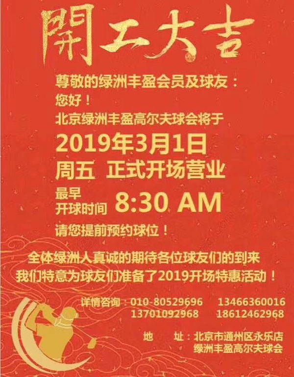 绿洲丰盈高尔夫球会3月1日开工大吉!