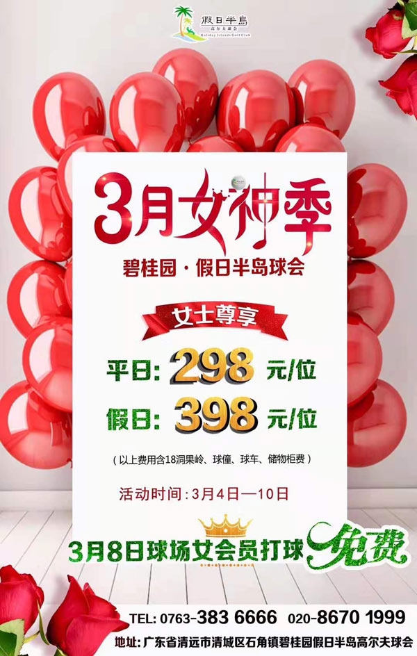 清远碧桂园·假日半岛高尔夫3月女神尊享周
