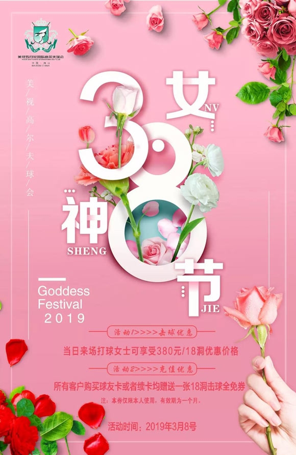 【节日特惠】3.8女神节,所有客户购买球友卡或者续卡者均赠送一张18洞击球全免券;击球券限本人使用;有效期为一个月。