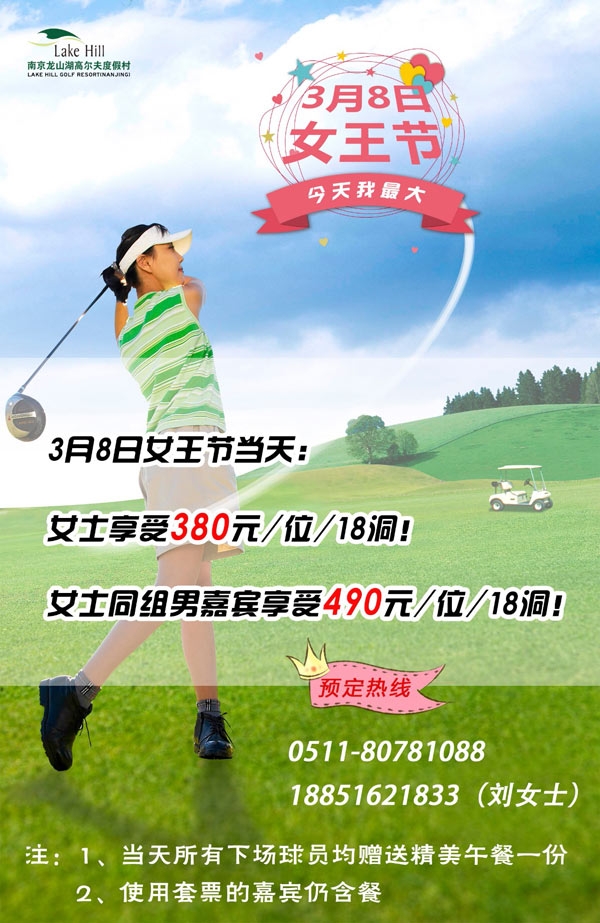 龙山湖高尔夫俱乐部女王节特惠: