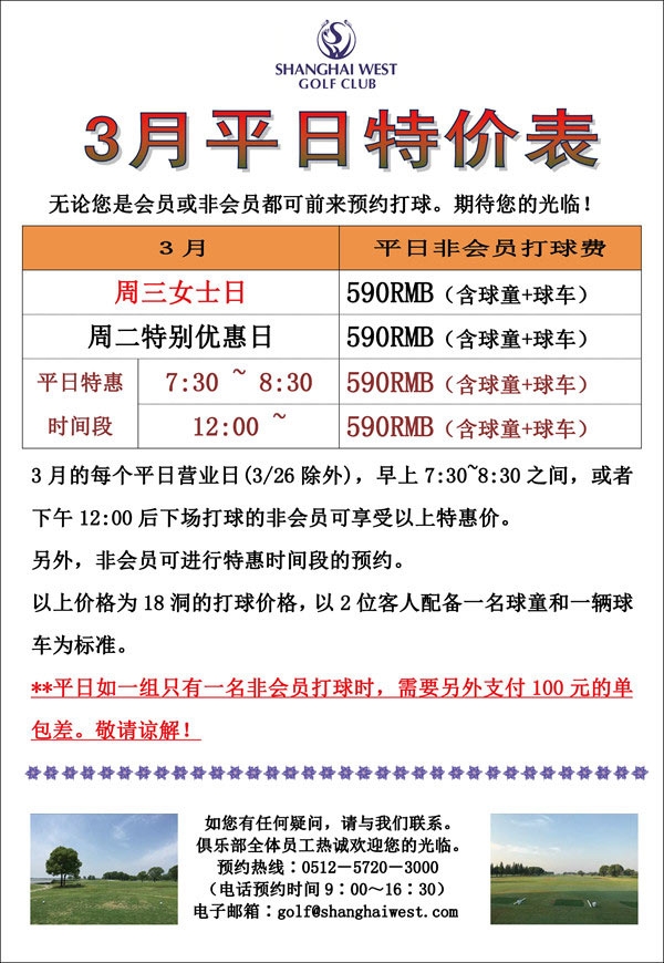 590元/18洞 上海光明高尔夫3月平日指定时间特惠