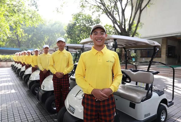 在高尔夫运动中,球童作为球会的灵魂,起着举足轻重的作用,球场上优秀的球童自然而然成为一道亮丽的风景线,他们要具备举止得体的礼貌礼仪、体系化的专业知识、多样化的沟通方式以及超前顾全的服务意识,让宾客体验高尔夫球的乐趣。