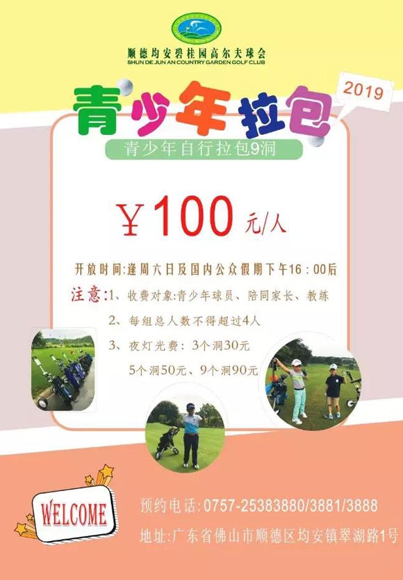 100元!顺德均安碧桂园高尔夫青少年自行拉包9洞