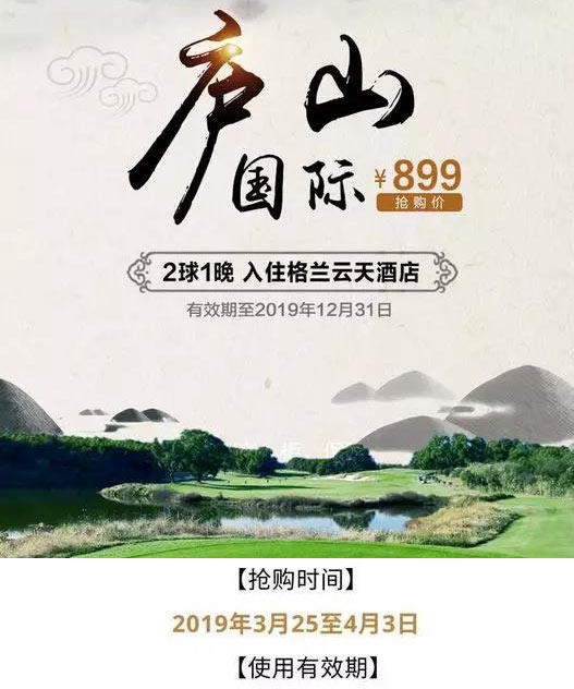 899元2球1晚 江西庐山国际高尔夫限时抢购套餐