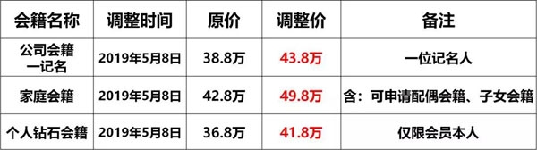 为了进一步体现圣安德鲁斯会籍的市场价值,自2019年5月8日起,球会个人钻石会籍、家庭会籍、公司一记名会籍价格上调,具体调整如下: