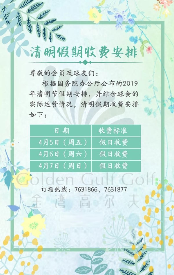 珠海金湾高尔夫清明假期收费安排: