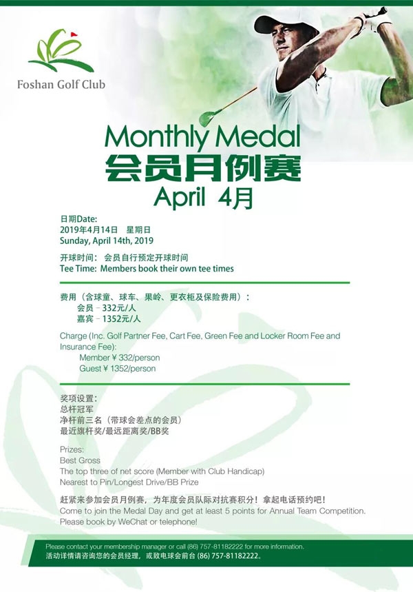 报名-佛山高尔夫球会四月会员月例赛