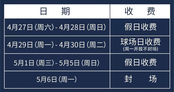 现将五一假期营业时间及收费标准公布如下: