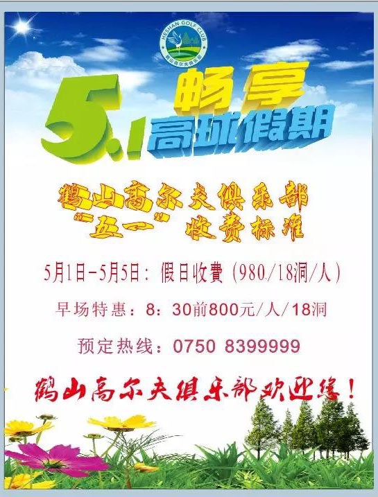 广东鹤山高尔夫俱乐部“五一”放假期间收费标准