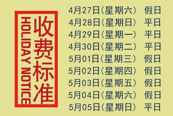 4月28日(周日)及5月5日(周日)按照平日价格收费;