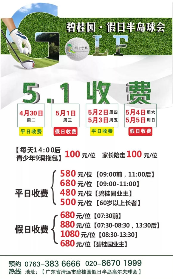580元/位!碧桂园假日半岛高尔夫2019五一期间收费标准