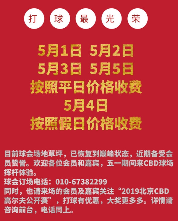 北京CBD国际高尔夫球会五一假期价格调整