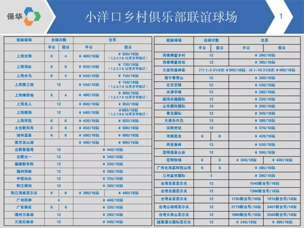 5月10日起小洋口高尔夫在全国及海外联谊球场共45家